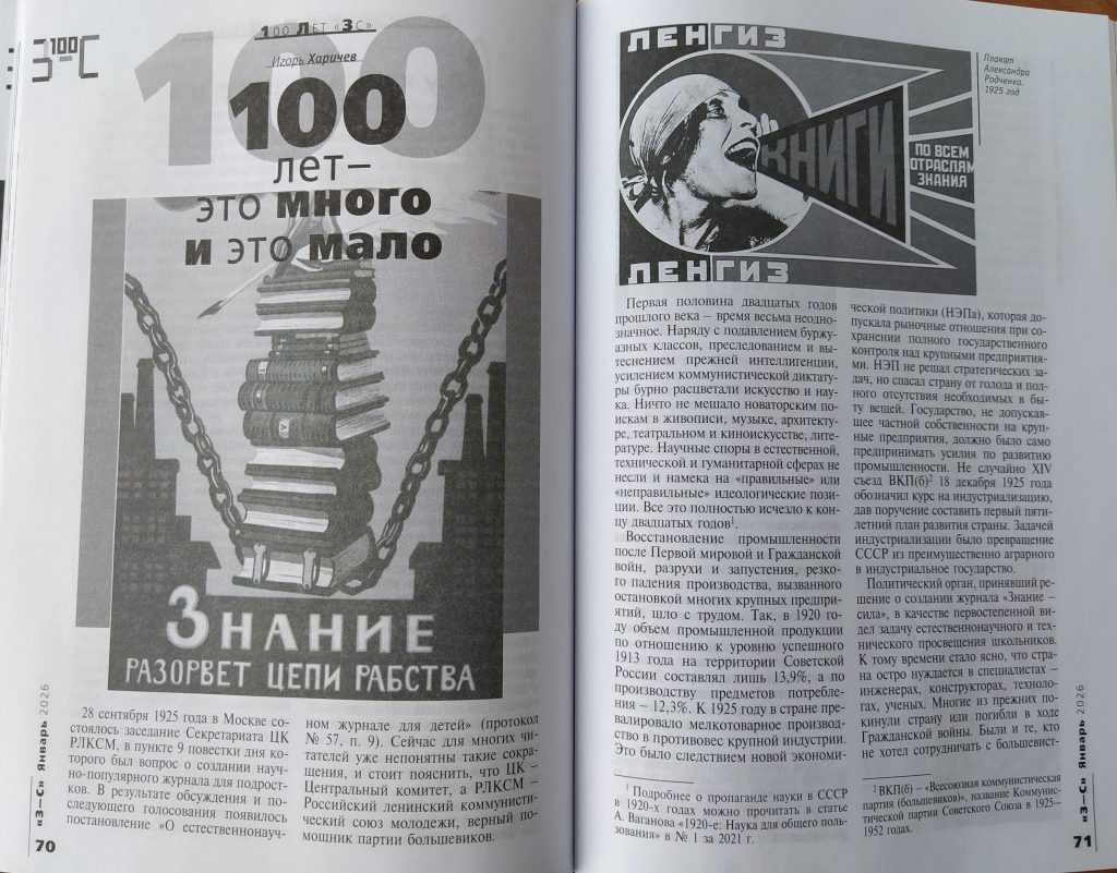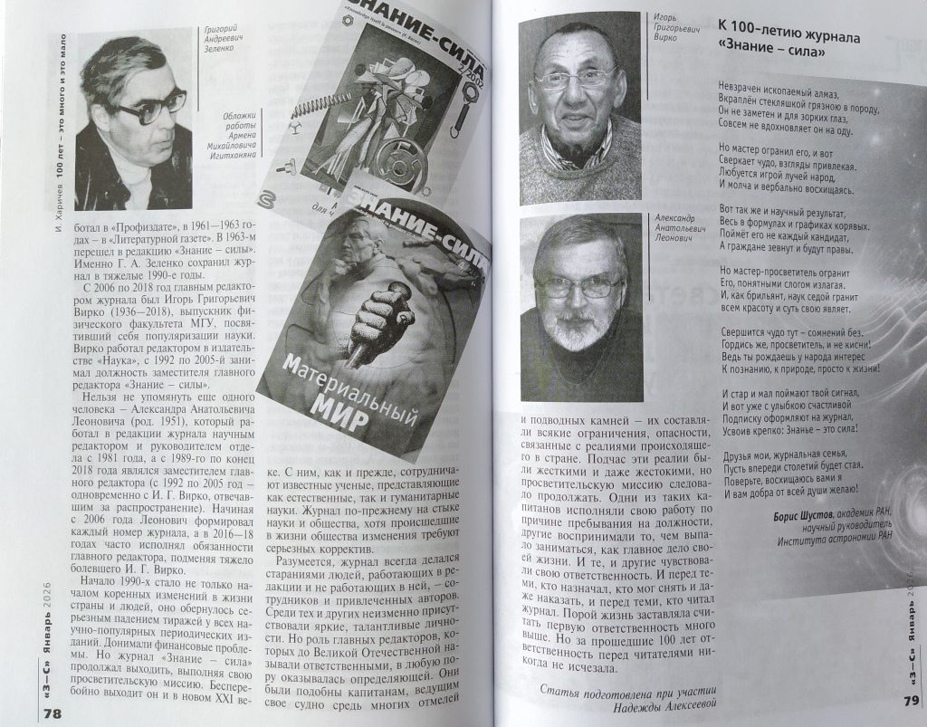 В январе 2026 года научно-популярному журналу «Знание − сила» исполняется 100 лет.